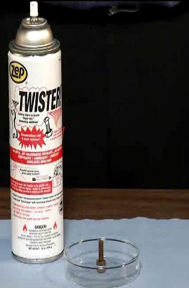 本品为渗透型润滑剂,可松动并去除管道、螺母、螺栓及其它紧固件上的锈蚀、污渍。独特配方结合溶剂与润滑剂,可松动锈蚀管道、螺纹、锁具、铰链、连接件等。本品可渗透并置换水分,有效预防腐蚀;同时提供表面润滑。接下来将演示产品如何起作用,从中可以看到产品的独特配方如何快速起效,渗透零件的生锈部分。首先,在玻璃盘内放入一点儿产品;接着,将带有螺母的螺栓放进去,螺帽那端朝下,然后观察。能看到,它几乎立即就爬上了螺栓。再将螺栓反过来放,螺纹那端朝下,能很清楚地看到产品是如何迅速地顺着螺纹爬了上去。为了更好地说明产品的优势,现在把这两块生锈的金属板合在一起,再放进去。注意液体短时间内在金属板间渗透上去多高,这充分说明了产品的渗透力。
